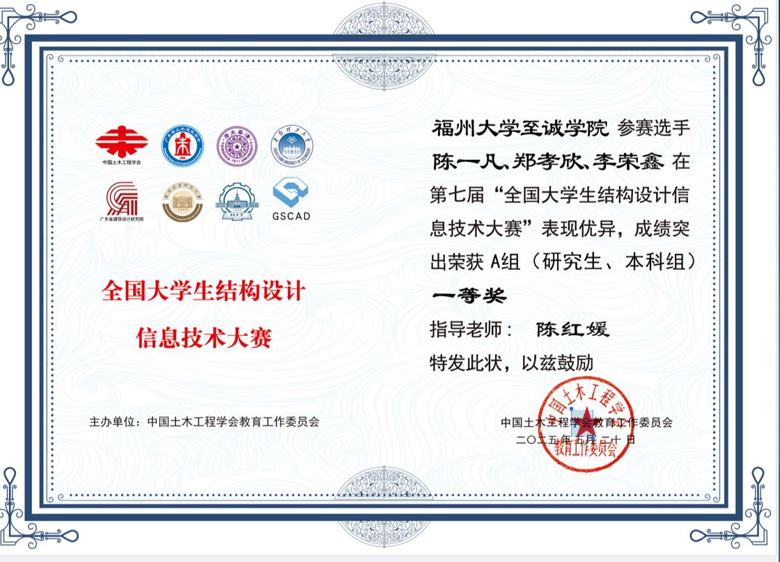 近日,由中国土木工程学会教育工作委员会、清华大学土木水利学院等单位共同发起的的第七届全国大学生结构设计信息技术大赛圆满落幕。土木工程系三支参赛队伍,经过激烈角逐,荣获A组(研究生、本科组)一等奖2项(指导老师:陈红媛、施玲),二等奖1项(指导老师:孙永飞)的优异成绩。全国大学生结构设计信息技术大赛旨在适应建筑行业信息化、数字化发展趋势,推动土木工程专业教育改革与创新人才培养。大赛以BIM技术、结构分析与数字化设计为核心,通过实际工程案例的模拟与实践,考察学生的结构设计能力、信息化工具应用水平及团队协作精神。据悉,本届大赛参赛学校达到了257所,参赛队伍 1714 支,提交作品数量 1134 份,本届赛题在实际项目设计中属于中高难度。该项赛事入选2023年《全国普通高校大学生竞赛分析报告》观察目录。