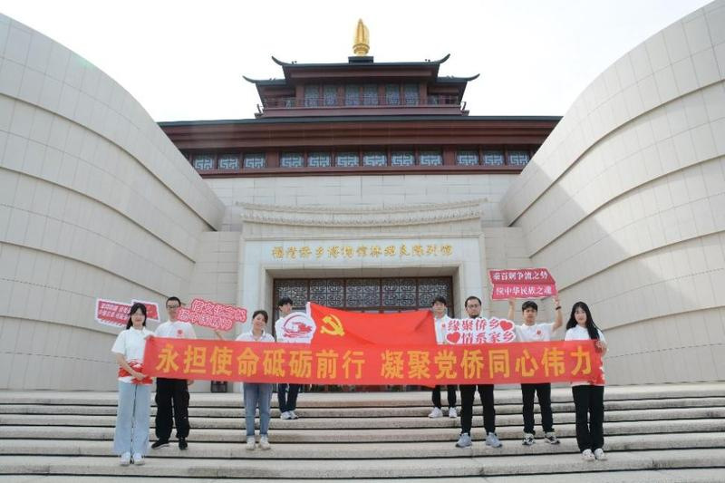 “小红传”实践队走进福建福清国家4A级风景区石竹山,开展暑期调研实践活动,以青春之名,赴时代之约。石竹山是一个以梦文化、道教文化为主要特色,兼具山水景观的大型综合性旅游区。实践队成员跟随讲解员的带领下对石竹山非遗文化和侨乡文化传承情况开展实地调研。在石竹山道院展示厅,实践队聆听了关于石竹山的道教文化与省级非遗文化——祈梦文化的各方面知识,以及众多爱国华侨回报故乡的感人故事,队员们深感石竹山非遗文化独有的魅力,同时增强了保护和传承非遗文化的决心和信心,并从中汲取到侨胞们“求生存,谋发展“的不屈意识与支持中国革命、建设和改革的无私情怀。实践队员拍摄宣讲视频(翁子杰 黄文祥摄)在石竹山,实践队员与归国华侨、侨商、石竹街道干部代表围坐一堂,结合党的二十大精神,开展“侨说党的二十大”心得分享会。“不管何时何地,都要学习好、领会好、宣传好、贯彻好党的二十大精神。”实践队的队员们在分享会上也纷纷与在座侨胞、侨商等交流探讨,“小红传”实践队队员陈羚有感而发道。“党的二十大报告给海内外侨界提供