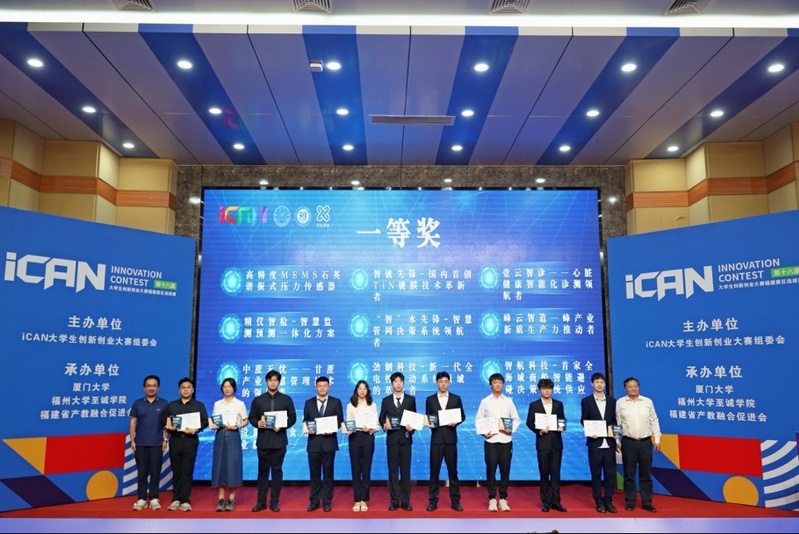 、福建省产教融合促进会承办,共有来自厦门大学、福州大学、福建农林大学、集美大学、厦门理工学院、闽南理工学院、福州外语外贸学院等30所省内高校的182支队伍、746人参赛,参赛作品覆盖智慧家庭、智慧农业、智慧社区、智慧医疗、智能交通、智能穿戴、智能制造等10个领域,最终,《壹云智诊—心脏健康智能化诊测领航者》《高精度MEMS石英谐振式压力传感器》《智航科技—首家全海域商船智能避碰决策系统供应商》等12个项目获得福建赛区一等奖并代表福建赛区进入全国iCAN大学生创新创业大赛总决赛。 为保证赛事的公平公正,赛前,各团队通过抽签决定答辩次序,评审专家组成员也是通过公开征集等方式从高校、重点行业、投资机构等遴选,并按照规避原则,最终由来自福州大学、中科院海西院泉州装备研究中心、福建华鼎智造、福建清新资本等单位的15名知名专家组成,覆盖赛道专业领域,保证赛事高质量进行。经过一上午的激烈角逐和专家评
