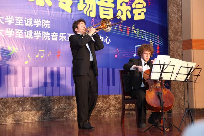 长号和大提琴独奏是大家在日常演出中较少听到的器乐独奏,当晚,三位音乐家近十首的作品精彩演绎让现场的观众耳目一新。据了解,长号演奏家Achilles Liarmakopoulos是2008年4月西班牙巴伦西亚举行的克里斯汀·林德伯格国际比赛获奖者。他与许多国际交响乐团合作演出过,其中包括旧金山Marin交响乐团,雅典青年交响乐团以及欧盟青年乐团等。 Liarmakopoulos先生是新音乐和长号新作品的有力支持者,他首演了许多新作曲家专门为他创作的新作品,其中不但有标准的演出作品,还有很多新作品以及从历史档案中复原的重要作品。大提琴演Benjiamin Elton Capps,他的演奏被纽约时代周刊的Bernard Holland誉为“最有吸引力的”,被纽约太阳报誉为“丰富的…且有人情味的”。他是许多奖项的得主,其中包括2001年茱莉亚大学前交响乐团音乐会比赛获奖;2004年Schlern国际音乐节比赛获奖等。Capps先生是位多才多艺的演奏者,在卡内基的斯特恩会堂,韦尔音乐厅和赞克尔音乐厅等举办音乐会。他是美洲爱乐乐团的首席大提琴家。他还是美洲爱乐乐团艺术与教育项目的讲师。而钢琴演奏家Mr.Xylas曾两度在纽约林肯中心举办音乐会。在音乐会上,他以表演者、乐队演奏员、艺术指导这三种为听众分献了具有希腊古典音乐风格的完美演出。