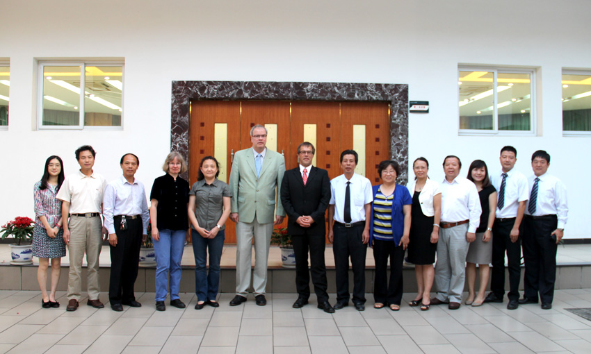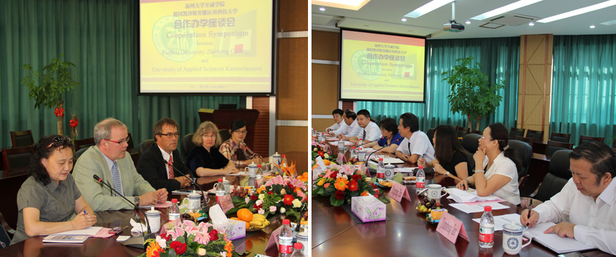 的办学历史、学院规模、师资力量、办学质量水平及对外交流合作的基本情况。约尔格•斯律特尔教授随后就德国凯泽斯劳滕应用技术大学办学情况及专业设置等作了简要介绍。凯泽斯劳滕应用科技大学位于莱茵兰—普法尔茨州,共有3个校区,分别位于凯泽斯劳滕、皮尔马森斯和茨威布吕肯,下设有5个学院,共有6000多学生,学院很明显的一个办学特色是理论与实践结合得非常紧密。双方随后就合作办学形式、学制设置、专业课程衔接、学分互认、学生语言能力要求及语言学习问题、学费、住宿费、生活费等问题深入交换了意见,达成了初步共识,并约定尽快签署合作协议。