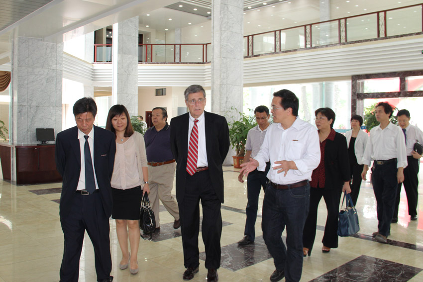 当天上午,双方召开校际合作具体事宜洽谈会。洽谈会上,吴秋明院长首先对美国宾夕法尼亚州东部大学校长一行的来访表示了热烈欢迎,回顾了两校之间友好合作办学的历史。随后,双方就合作MBA项目的招生简章制作、合作协议条款、语言关课程开设等具体事项深入交换了看法,并达成一致意见。会后在院领导的陪同下,大卫•布莱克校长一行参观了学院的图书馆、琴房、足球完场比分培训学校、学生第一实验实训中心等地,深入了解学院办学情况。