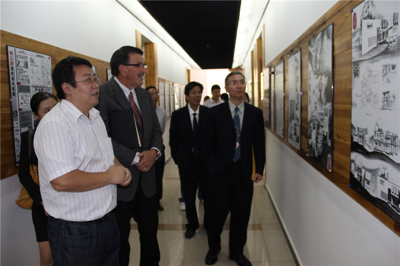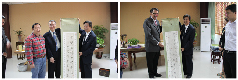 座谈会后,双方互赠礼物并合影留念。随后,代表团一行还在院领导的陪同下参观了建筑系、博学园等地。当天下午,美国南伊利诺伊斯大学应用科学与艺术学院院长王飓安教授还在科报厅为计算机工程系学生带来题为《计算机的巨大挑战与成功的关键》的讲座,应用科学与艺术学院建筑学院主任沃尔特·温德勒教授在图书馆音乐厅为建筑系学生带来题为《21世纪的建筑教育》的讲座。
