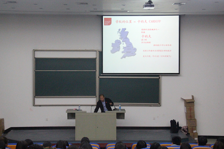 宣讲会由“项目归国学生感言”和“留学项目介绍”两部分组成,由英国南威尔士大学招生办中国代表Sam Huang老师主讲。院外事办、培训部、管理系有