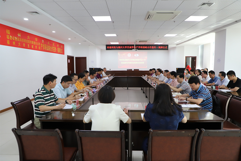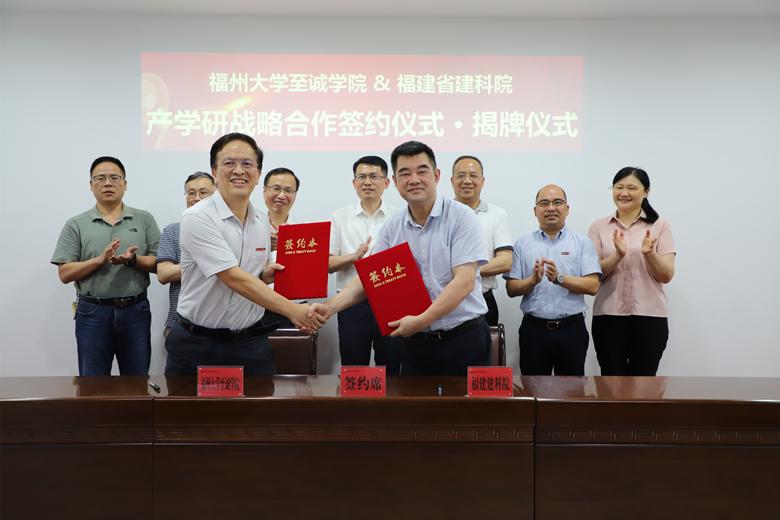 座谈会后,举行了福建建科院与足球完场比分 产学研战略合作签约及揭牌仪式。福建建科院党委书记、董事长叶健,足球完场比分 院长陈为旭作为双方代表签订了产学研合作框架协议。双方领导共同为足球完场比分 -福建建科院产学研合作基地揭牌。