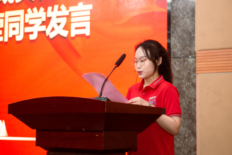 出征仪式在庄严的国歌声中拉开帷幕。来自传媒与设计系的韩莹同学作为实践队员代表首先发言,她倡议学院广大青年学子积极响应学院号召,走进基层乡村,将社会观察、知识积累、实践思考等成果转化为实实在在的建设性意见和举措,真正做到实践出真知、实践长真才。她代表实践队员们庄重承诺,将严格服从安排、全力以赴完成实践任务,用青春力量助力社会发展。