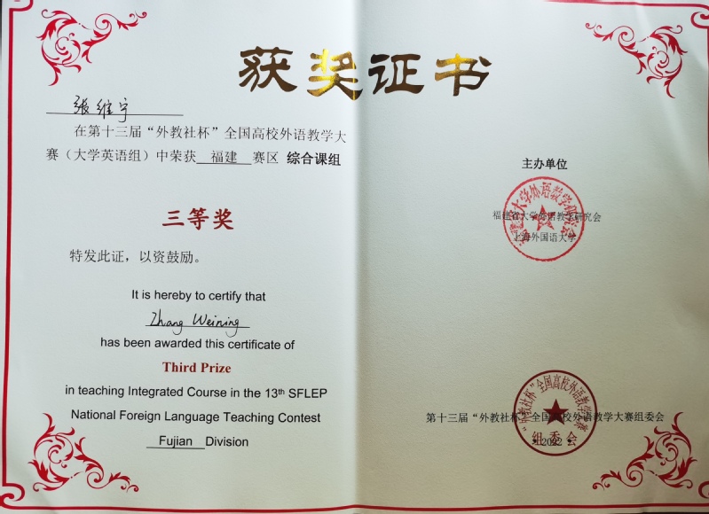 2022年7月5日-7日,第十三届“外教社杯”全国高校外语教学大赛福建赛区决赛在闽江学院举办。足球完场比分 外国语系刘伟、张维宁2位老师参加比赛,与来自福建师范大学、福建农林大学、华侨大学等省内20多所高校的39位外语教师同台竞技,荣获佳绩:刘伟老师获视听说组二等奖、张维宁老师获综合课组三等奖。