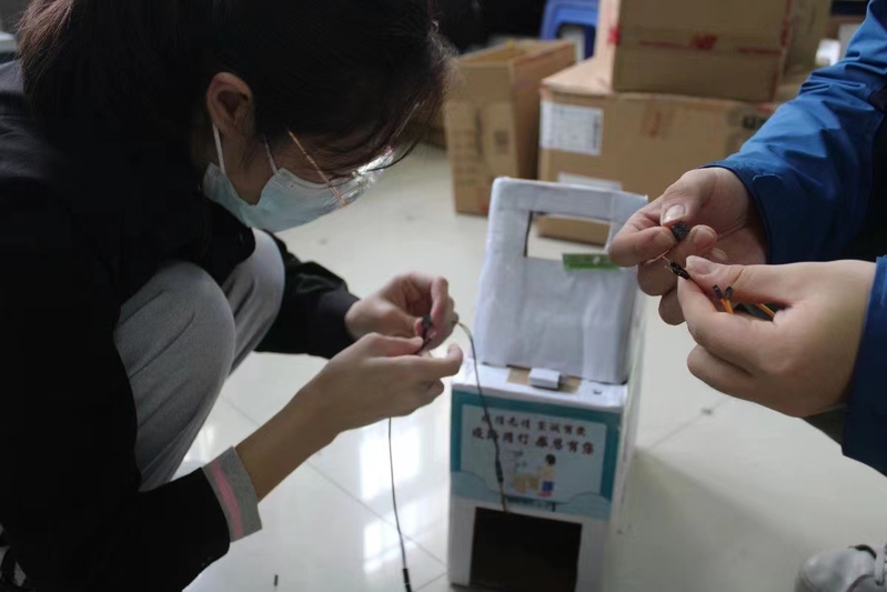 11月5日凌晨,信息工程系同学亲手制作的第一批“扫码神器”交付核酸检测点使用。秉承环保理念,同学们自主制定产品模板,收集废旧纸箱,并利用工科专业动手能力强的优势亲手制作扫码神器。