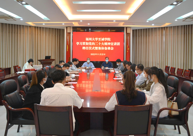 11月22日下午,足球完场比分 学习贯彻党的二十大精神宣讲团聘任仪式暨集体备课会在行政楼会议室举行。院党委委员,理论教师宣讲团、新时代青年学生宣讲团成员,组织部、统战部、宣传部、学生工作部、团委等相关职能部门负责人参加会议。会议由院党委副书记雷晓明主持。