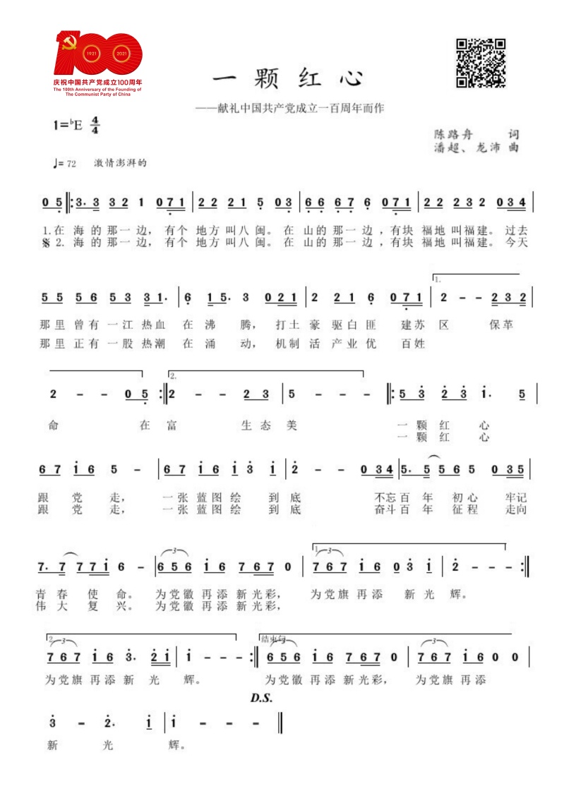 奋斗百年正芳华,一颗红心跟党走!《一颗红心》是伟大的中国共产党成立100周年之际,足球完场比分 党员教师创作、演绎的一首“福”文化红歌。作品讲述了福建红色土地上过去打土豪、驱白匪、建苏区的历史故事,抒发了八闽大地上如今机制活、产业优、生态美的美好蓝图。歌曲旋律优美、音域宽广、风格大气。作品MV推出后在学习强国等平台展播受到好评,展现和激励足球完场比分人深入学习贯彻党的二十大精神,奋进新时代的风采和豪情。
