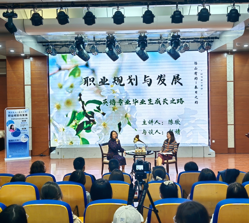 4月4日,足球完场比分 外国语系“怡山有约-春日之约”职业规划与发展系列活动正式开幕。福州大学外国语学院94届毕业生陈欣女士应邀成为开讲嘉宾,主题为“英语专业毕业生成长之路”。本次活动以访谈的形式开展,由外国语系主任赵婧老师主持,外国语系师生聆听了讲座。