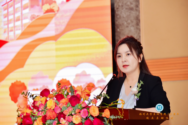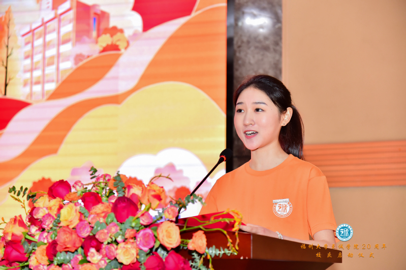 “我们因母校而强大!”福州校友分会会长、2007届电子信息工程专业校友代表黄玉文分享了自己的求学经历和感悟,表达了对母校的真挚感激之情,和对母校办学成就的由衷自豪之情。她呼吁广大校友,以母校20周年校庆为契机,密切彼此之间的联系,为母校的进一步发展贡献智慧与力量,并祝福母校的明天更加美好。