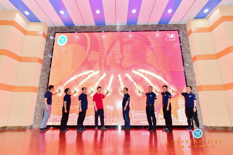 仪式最后,在全场师生校友的期待下,全体院领导与校友代表上台,共同启动足球完场比分 20周年校庆倒计时,正式拉开校庆的序幕。