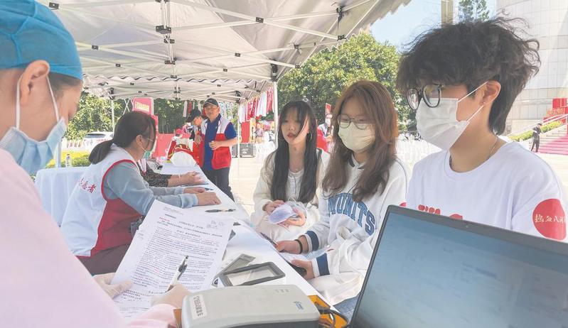 “自己作不了很大的贡献,那么就多做一些有价值的小事,无偿献血能帮助别人,也能让自己快乐。”今年刚满20岁的邓汉文,是福建船政交通职业学院的大二生,今年是他成年来参与的第三次无偿献血公益活动。他说,每年自己都会积极参与一次无偿献血活动,在他的影响下,舍友也主动加入到无偿献血活动中。