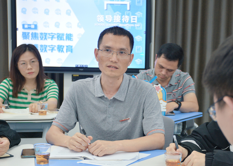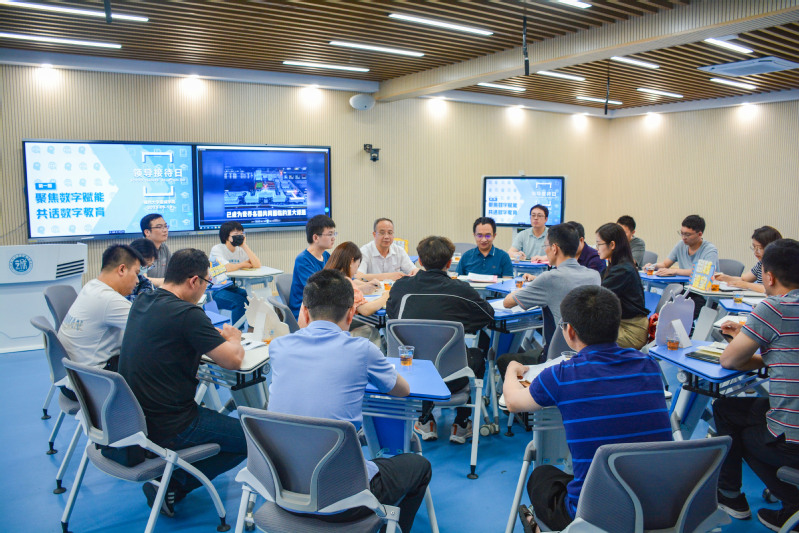 为深入开展学习贯彻习近平新时代中国特色社会主义思想主题教育,大兴调查研究之风,结合省委关于“深学争优、敢为争先、实干争效”的部署要求,足球完场比分 举办了“领导接待日”系列活动。5月19日下午,2023年“领导接待日”首场活动在子兴楼402智慧教室举行。院党委常务副书记何希耕、副院长张栋与来自各党总支、各职能部处、各系、各教研室的20余名师生代表就“聚焦数字赋能、共话数字教育”话题以“圆桌派”的形式展开交流。活动由张栋副院长主持。