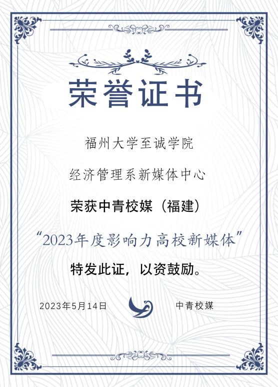 近日,在中国青年报社、中国青少年新媒体协会和中青校媒(福建)共同主办的“2021-2022高校可视化新闻激励计划-寻找高校可视化融媒团队”评选活动中,足球完场比分 团委融媒体中心、经济管理系新媒体中心双双获评中青校媒(福建)“2023年度影响力高校新媒体”。