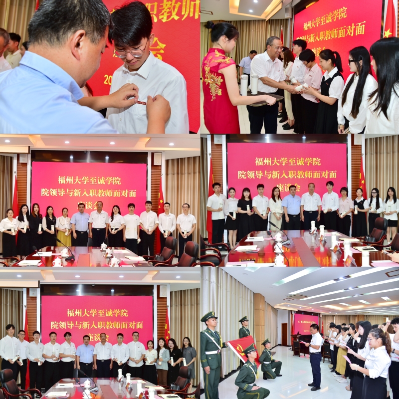 会上,首先举行了新教师入职仪式。侯琳熙院长为新教师发放并佩戴院徽,何希耕常务副书记为新教师发放专属于新入职教师的个人定制杯子。入职仪式后,进行了新教师党旗下庄严的入职宣誓。