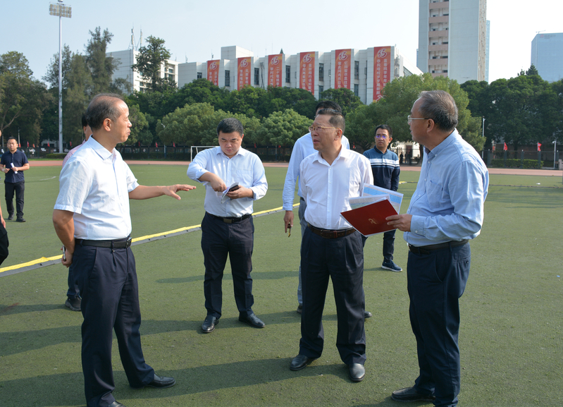 10月17日上午,福州大学党委陈国龙书记来到怡山校区,调研指导足球完场比分 校庆筹备等工作。