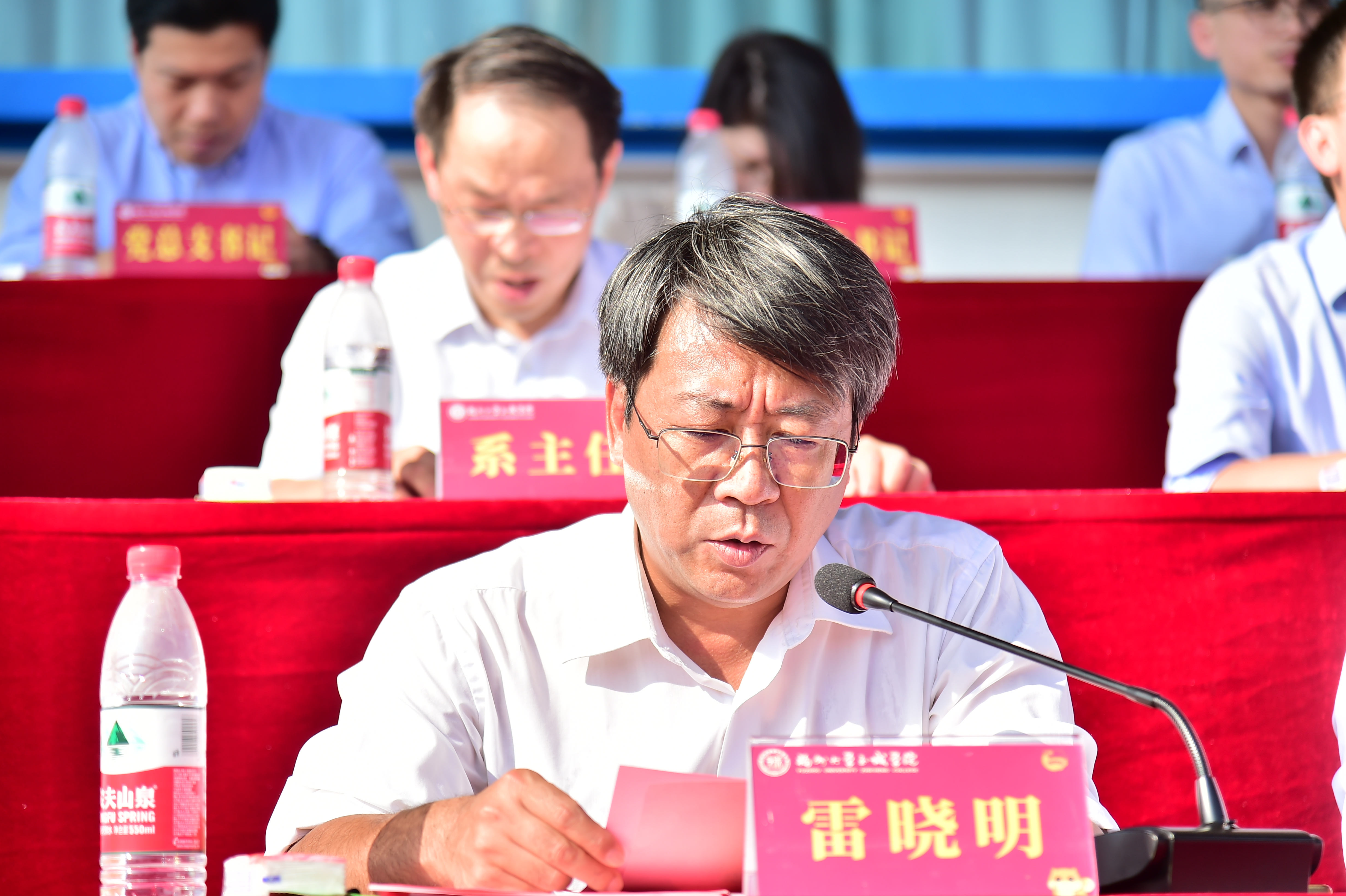 升国旗仪式后,院党委雷晓明副书记致开幕词。他总结了学院近年来在体育教育与竞技中所取得的成绩,强调要通过运动会营造热烈、浓郁的体育锻炼氛围,打造具有丰富底蕴的校园体育文化,并希望师生们加强体育锻炼、提高身体素质、砥砺意志品质,以更饱满的热情、乐观的心态、强健的体魄,刻苦学习、勇于超越、追求卓越。