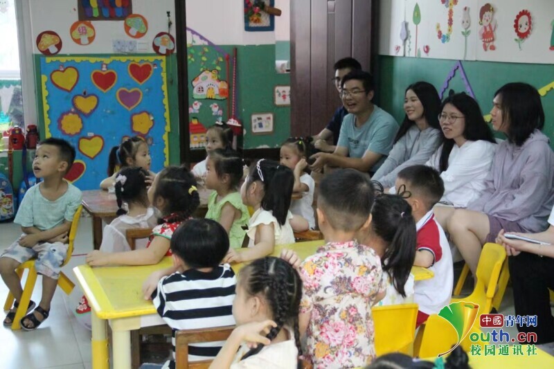 图为实践队队员在半山幼儿园教授小朋友们画画