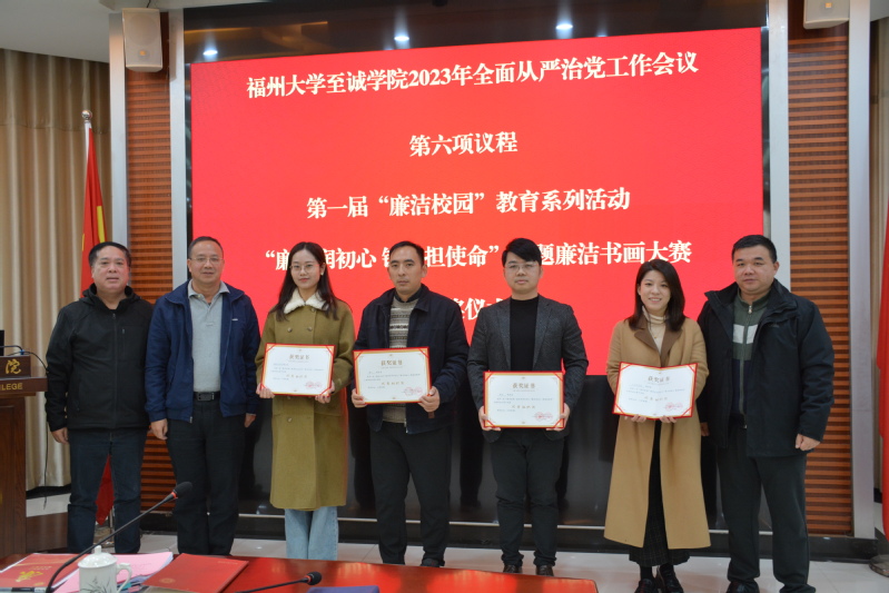 会后,学院还举行了第一届“廉洁校园”教育系列活动之“廉洁润初心 铸魂担使命”主题廉洁书画大赛优秀组织奖颁奖仪式。