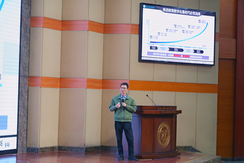 随后,大会进行教育思想讨论学术报告,网络安全与信息化办公室林庆新老师、传媒与设计系王永菁老师先后上台发言。他们强调了思想教育在培养学生综合素质中的重要地位,分享了研究成果和实践经验,讨论了思想教育的课程设置、教学方法、实践活动等问题。