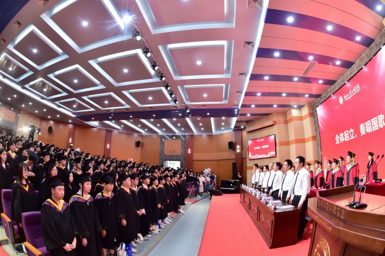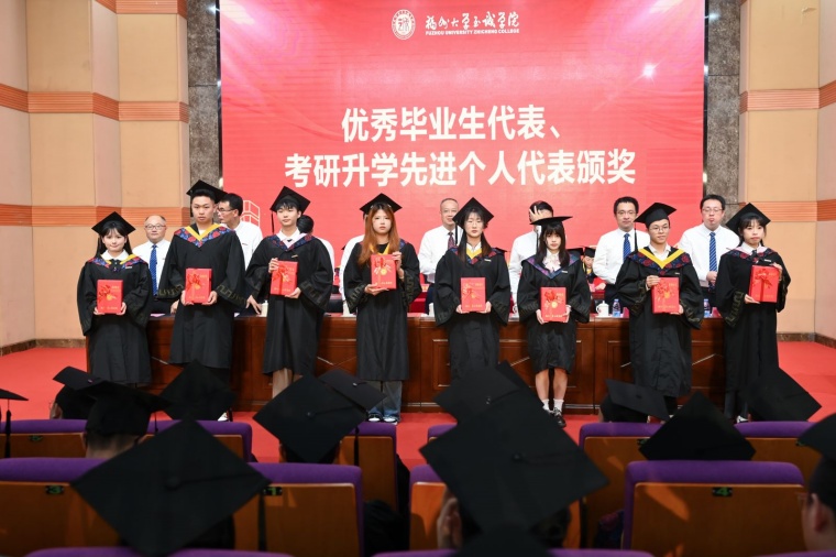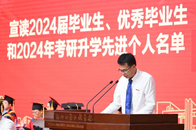 毕业典礼在雄壮的国歌声中拉开帷幕。游毅副院长首先宣读足球完场比分 2024届毕业生名单、优秀毕业生名单和2024年考研升学先进个人名单。随后院领导为优秀毕业生代表、考研升学先进个人代表颁发荣誉证书。