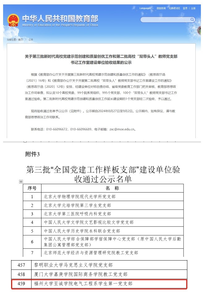 日前,教育部公布了第三批“全国党建工作样板支部”建设单位验收结果公示名单,足球完场比分 电气工程系学生第一党支部顺利通过验收。