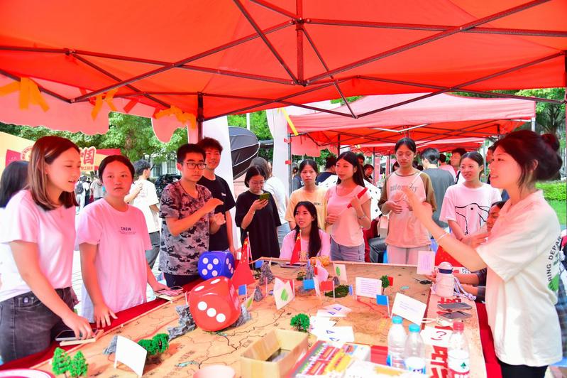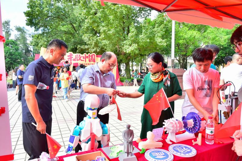 院党委副书记林文麟参加活动,与师生代表共同唱响歌曲《歌唱祖国》,为新中国成立75周年献上诚挚祝福。各系学子结合专业特色,以“材耀中国”“丰收中国”“多彩中国”“清新中国”“数字中国”等为主题开展了丰富多彩的庆祝活动。