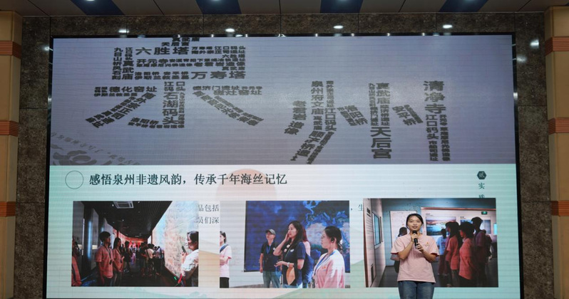大凰山社区团支部副书记(挂职)、2021级外国语系学生余昕旖分享了她在社区挂职期间的收获与感悟。2022级传媒与设计系学生潘小茹从“知、行、获”三个维度分享她参加“扬帆计划”福建省大学生暑期实习的经历并号召同学们积极加入“扬帆计划”。