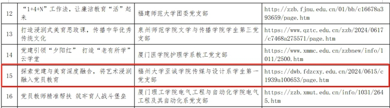 其中,《“三通三融”党建带团建育人模式探索》(执行项目支部:电气工程系学生第一党支部)获全省本科高校党支部工作“立项活动”优秀成果一等奖;《探索党建与美育深度融合,将艺术浸润融入党员教育》获全省本科高校党支部工作“立项活动”优秀成果三等奖(执行项目支部:传媒与设计系学生第一党支部);马克思主义学院党员教师孙大为先进事迹《仰望星空,脚踏实地——作一名热血有情的思政教育工作者》入选全省党员好故事。