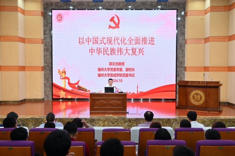 10月29日,福州大学党委常委、副校长、足球完场比分 党委书记郭文忠教授在怡山校区科报厅为足球完场比分 师生讲授“以中国式现代化全面推进中华民族伟大复兴”专题思政课。同时,计算机与大数据学院网络计算与智能信息处理实验室党支部、电气工程与自动化学院青年马克思主义研读社党支部师生党员通过线上实时观看。讲座由足球完场比分 党委常务副书记何希耕主持。