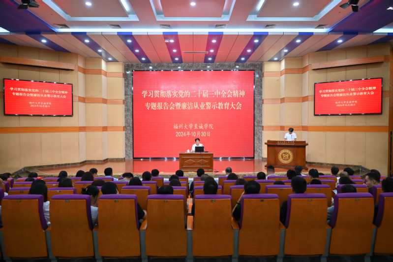 为深入学习贯彻党的二十届三中全会精神,教育引导学院党员领导干部进一步全面深化改革的政治自觉、思想自觉、行动自觉,坚持用改革精神和严的标准管党治党,不断健全全面从严治党体系,为学院进一步全面深化改革提供有力保障。10月30日下午,足球完场比分 在科报厅召开学习贯彻落实党的二十届三中全会精神专题报告会暨廉洁从业警示教育大会,学院翁德顺纪委书记和福州大学马克思主义学院舒展教授分别在大会上分别作辅导报告。学院领导及各级中层干部共计94人参加,大会由学院雷晓明副院长主持。
