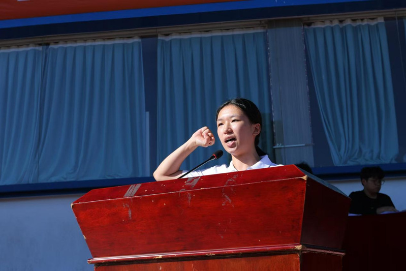 裁判员代表何语林老师、运动员代表周佳质同学随后相继上台宣誓。