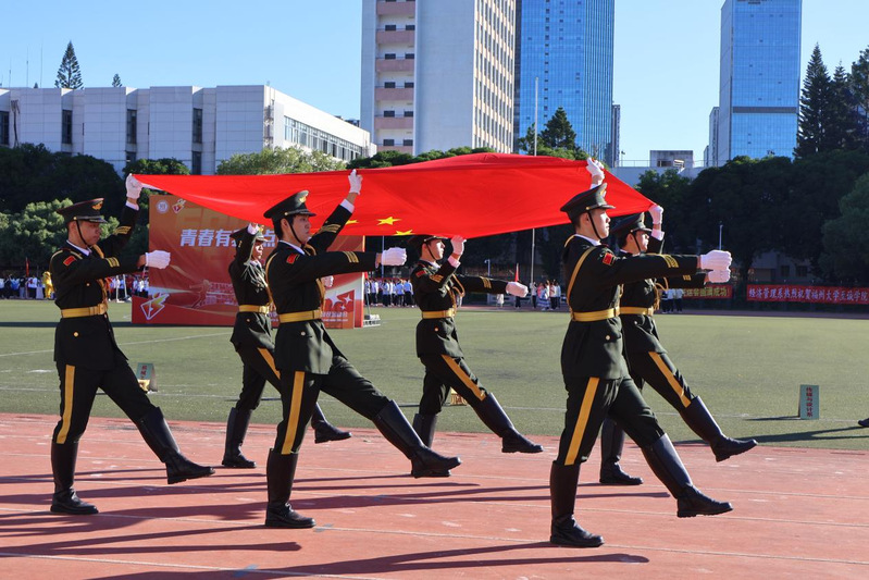 升国旗仪式后,林文麟党委副书记致开幕词。他总结了学院近年来在体育教育与竞技中所取得的成绩,强调要牢记习近平总书记的嘱托,积极响应建设体育强国的号召,通过运动会营造热烈、浓郁的体育锻炼氛围,打造具有丰富底蕴的校园体育文化。他希望师生们以热烈饱满的精神投入到体育事业的建设,积极参与体育健身活动,强健体魄、砥砺意志;秉承“更快、更高、更强、更团结”的奥林匹克精神,顽强拼搏,踔厉奋发,以更饱满的精神、更强烈的热情投入到学习生活中。