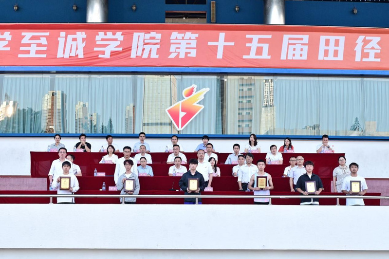 游毅副院长宣读第二届学生群体竞赛“弘毅杯”获奖名单及本届运动会“体育道德风尚奖”名单。土木工程系夺得第二届学生群体竞赛“弘毅杯”第一名,经济管理系和信息工程系夺得第二名为;计算机工程系、传媒与设计系和化学工程系夺得第三名;计算机工程系、信息工程系、传媒与设计系、机械工程系、外国语系、数据科学与统计系、土木工程系、电气工程系8个单位获得本届运动会“体育道德风尚奖”。随后,与会领导嘉宾为获奖单位颁奖。