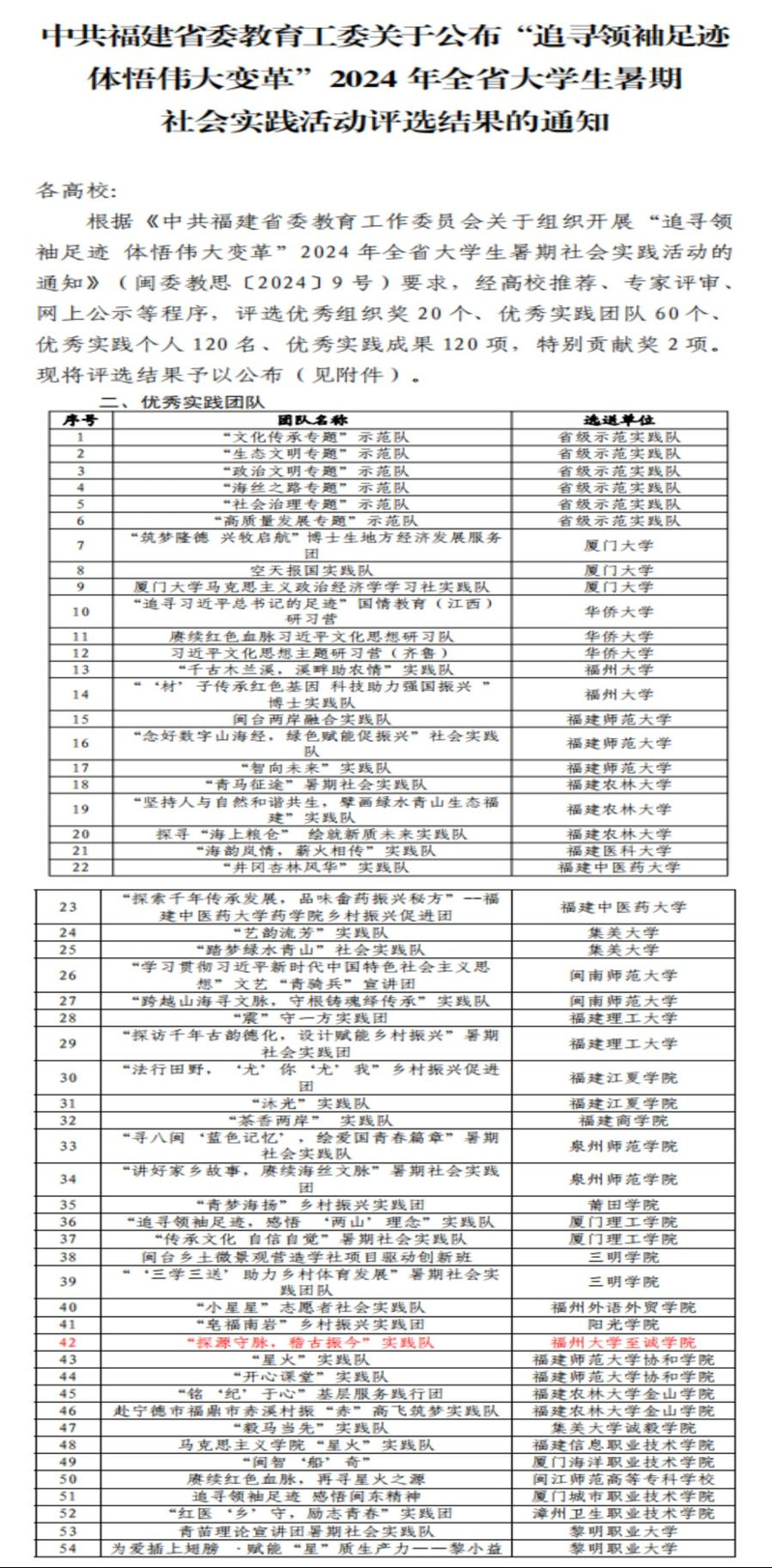 日前,中共福建省委教育工委公布了“追寻领袖足迹 体悟伟大变革”2024年全省大学生暑期社会实践活动评选结果。经高校推荐、专家评审、网上公示等程序,评选产生了优秀组织奖20个、优秀实践团队60个、优秀实践个人120名、优秀实践成果120项、特别贡献奖2项。足球完场比分 “探源守脉,稽古振今”实践队成功在活动中获评优秀实践团队。