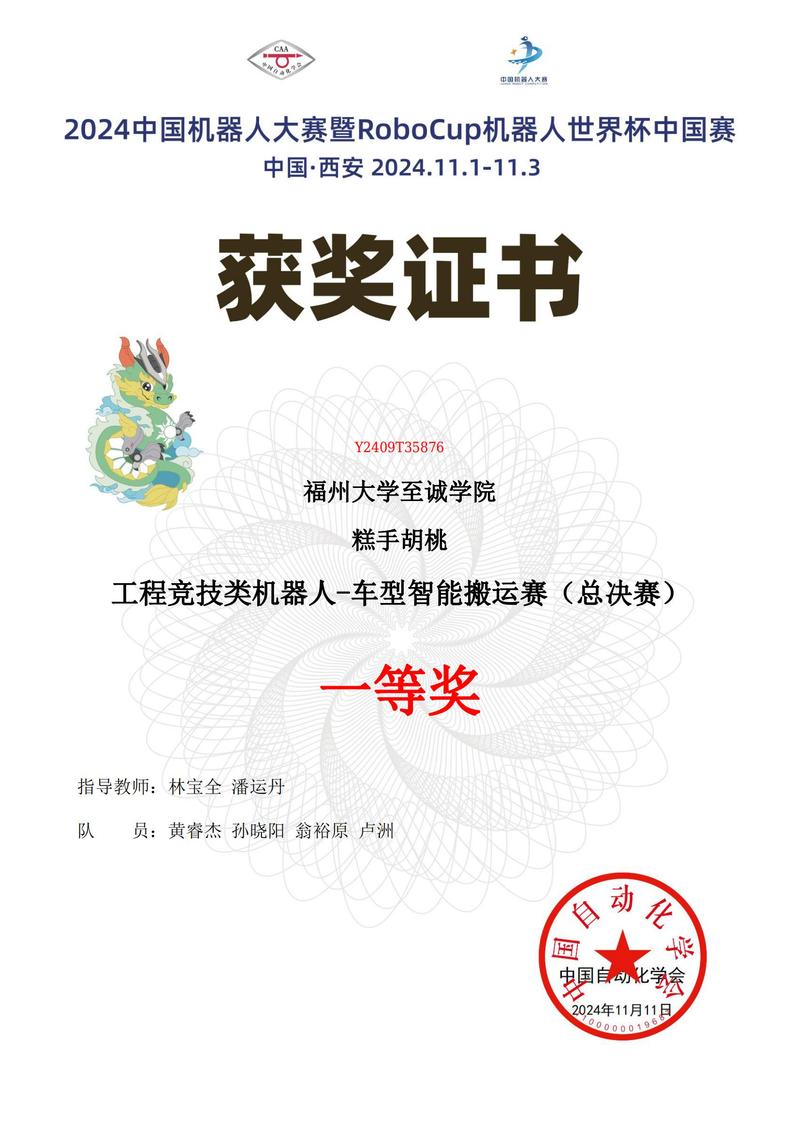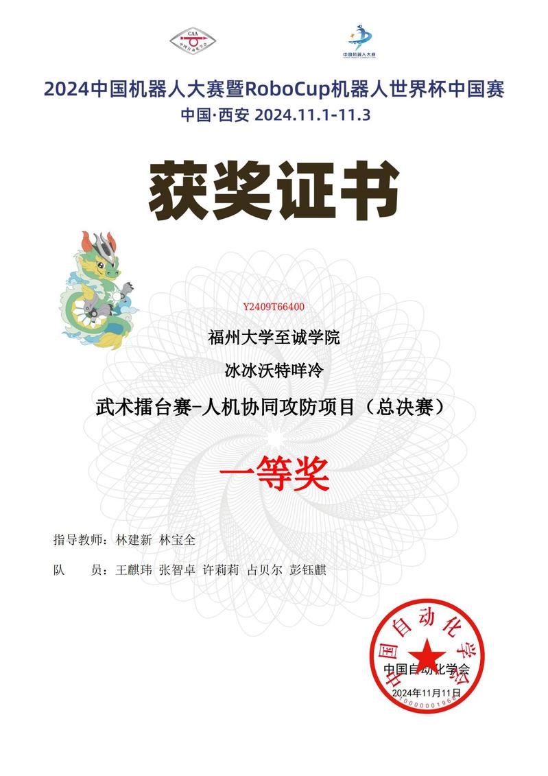 日前,2024中国机器人大赛暨RoboCup机器人世界杯中国赛在陕西西安会展中心圆满落幕。福州大学足球完场比分 电气工程系学子组队参加比赛,取得2项一等奖、3项二等奖、5项三等奖的佳绩。