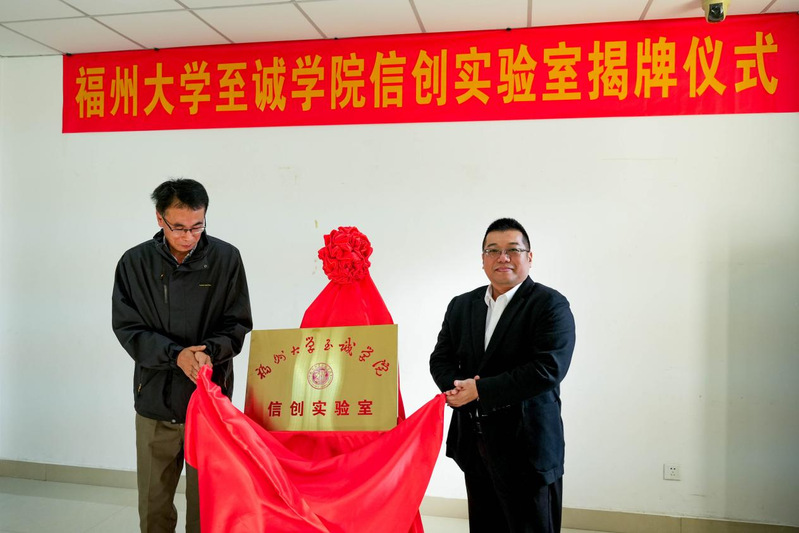 福建省信创产业有限公司董事长董智华与足球完场比分 副院长游毅,共同为足球完场比分 信创实验室揭牌。