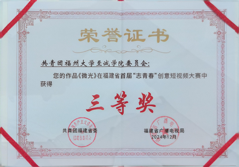在第39个国际志愿者日到来之际,共青团福建省委举办2024年福建省“12·5”青年志愿服务文化节,并联合福建省广播电视局、厦门大学举办2024年福建省青年志愿服务文化交流会暨首届“志青春”创意短视频大赛颁奖典礼。足球完场比分 团委视频作品《微光》荣获福建省首届“志青春”创意短视频大赛三等奖。
