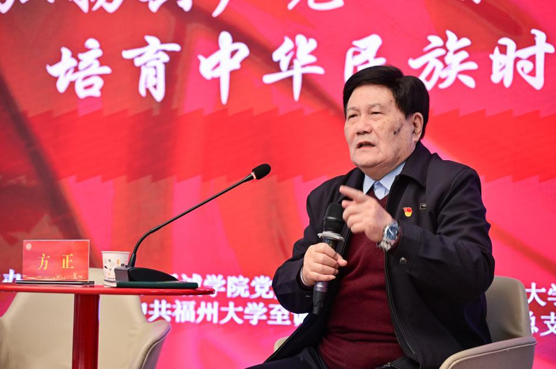 本次活动邀请方尔灏烈士侄子、福州市委党校退休教师方正副教授与师生进行访谈交流,回顾福州大革命时期党领导福州革命的艰辛历程。方正副教授自退休后便一直关注并收集方尔灏烈士的有关资料,希望能向更多人讲述方尔灏烈士的故事,弘扬爱国精神。活动现场,师生们通过观看方尔灏烈士的事迹记录视频,并从方教授动情的讲述中,了解了方尔灏烈士投身于革命的热潮,在福州创建中共福州团支部、福州团地委、福建地委,积极宣传先进思想,为保守党的机密资料不幸被捕最后英勇就义的感人故事,对新民主主义革命时期青年的历史使命与卓越贡献有了更深刻的认识。方老师寄语在场学生,“要传承和弘扬先辈的遗志,坚定理想信仰、努力奋斗,为实现伟大复兴的中国梦做出自己的贡献!”