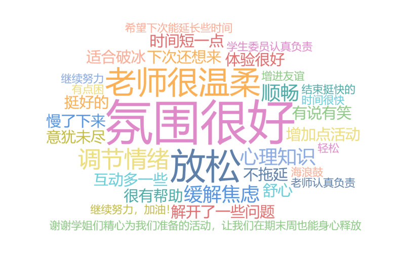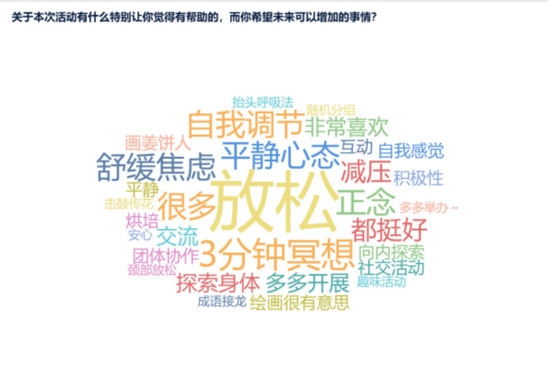 据悉,暖冬“心”行动共开展4场活动,覆盖2个一站式学生社区,服务52人,并为参加活动的同学准备了考试季必备的小礼物及关于“释放法”“情绪识别与管理”主题的心灵手册等暖心礼包,活动受到同学们热烈反馈。