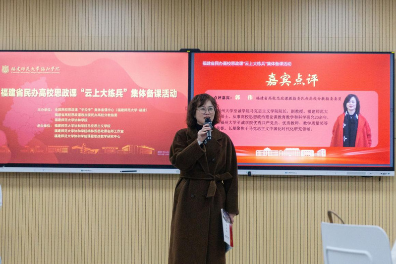 3月6日,福建省民办高校思政课“云上大练兵”集体备课活动在福建师范大学协和学院开展。足球完场比分 马克思主义学院院长郭伟副教授作为福建省高校思政课民高办校分教指委委员受邀担任大会点评嘉宾,马克思主义学院老师一同前往观摩学习。