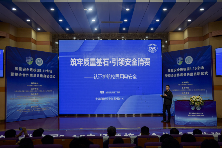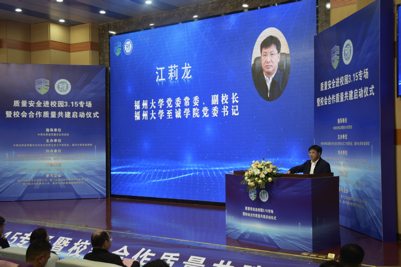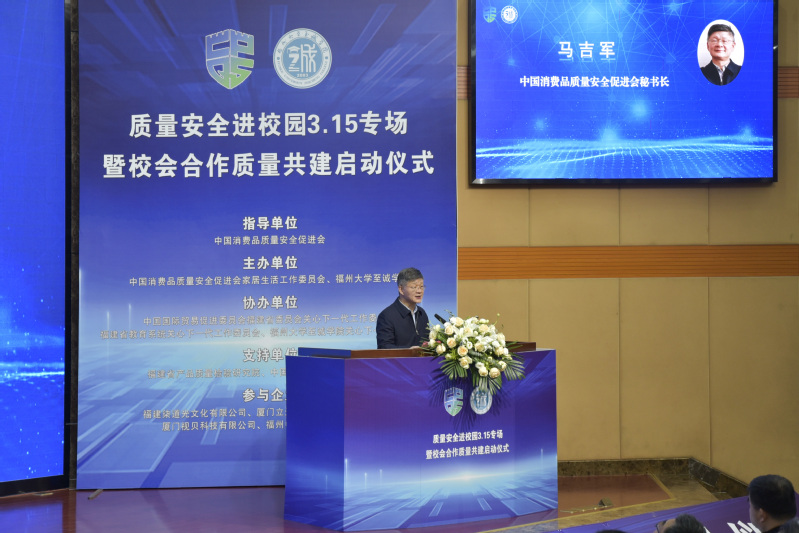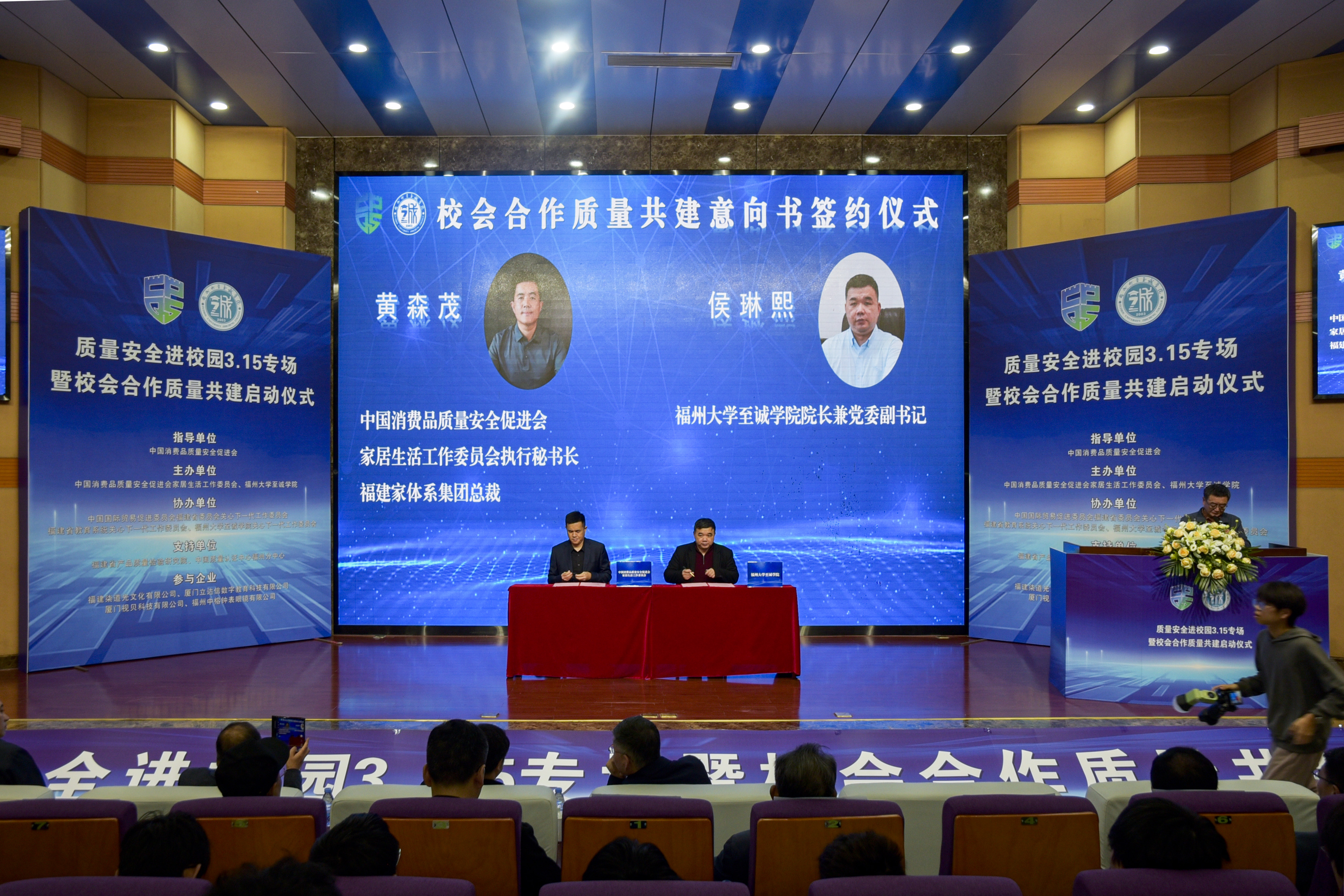 3月15日上午,质量安全进校园3.15专场暨校会合作质量共建启动仪式在足球完场比分 科报厅举行。活动由中国消费品质量安全促进会指导,中国消费品质量安全促进会家居生活工作委员会与足球完场比分 共同主办。中国消费品质量安全促进会秘书长马吉军,福州大学党委常委、副校长、足球完场比分 党委书记江莉龙,中国消费品质量安全促进会副理事长吴赳,中国国际贸易促进委员会福建省委员会关工委主任陈扬,足球完场比分 院长侯琳熙,足球完场比分 党委常务副书记何小红以及来自福建省教育系统关工委、福建省产品质量检验研究院、中国质量认证中心福州分中心等众多领导专家和企业代表出席活动。活动由足球完场比分 党委副书记林文麟主持。