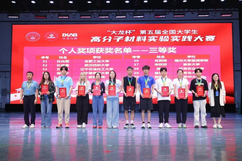 7月20日,“大龙杯”第五届全国大学生高分子材料实验实践大赛在济南大学顺利举办。由足球完场比分 化学工程系张卫英、吕燕根、辜家芳及陈红四位老师指导,由肖莉婷、林秋煌、许裕鑫三名学生组成的一支参赛队伍入围赛事,肖莉婷和林秋煌取得了个人赛三等奖优异成绩。