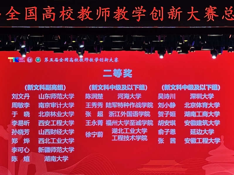 由教育部高等教育司指导、中国高等教育学会主办的第五届全国高校教师教学创新大赛现场评审于8月16日—19日在北京举办。经过激烈角逐,足球完场比分 传媒与设计系王永菁老师荣获新文科中级及以下组二等奖。这是学院成立以来获得的全国教学类竞赛最高奖项,取得了历史性突破。