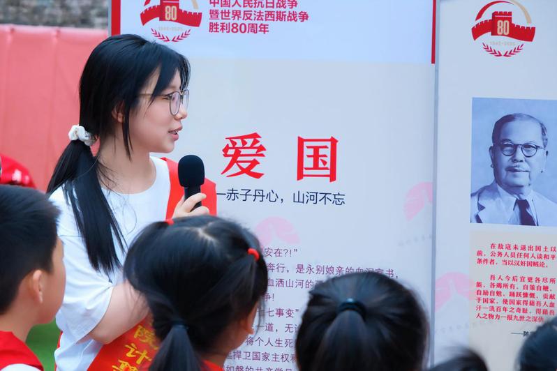 学院计算机工程系的学生志愿者,与鼓楼第三实验小学的小学生志愿者携手担任红色讲解员。他们以“爱国、赴死、血战、团结、必胜”五个篇章为脉络,沿着八闽抗战历程主线,深情讲述每位英烈的生平与英勇壮举——从本土子弟参军报国的坚定决心,到军民同心御敌的顽强斗志;从海外侨胞支援祖国的赤诚之心,到各界志士牺牲奉献的崇高情怀。志愿者们用通俗生动的语言,将厚重的历史转化为鲜活的思政素材。