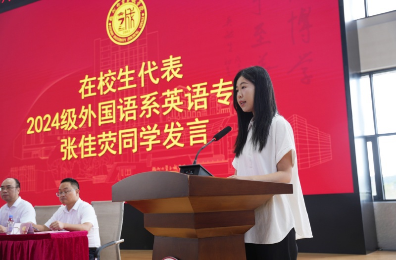 教师代表化学工程系系主任林旭聪教授在发言中欢迎新生加入足球完场比分 大家庭,寄语新生要转变角色、夯实基础、提升素养、做好规划,助力新生适应大学学习生活。在校生代表外国语系英语专业张佳荧分享了她一年来的学校经历,鼓励新生树立远大的理想和目标,全面发展,勇于探索。新生代表经济管理系物流管理专业黄天伊则表达了对大学生活的热切期待和坚定决心,表示在大学学习中要做“勤学者”“善思者”“践行者”,展现出新生群体的蓬勃朝气与远大志向。