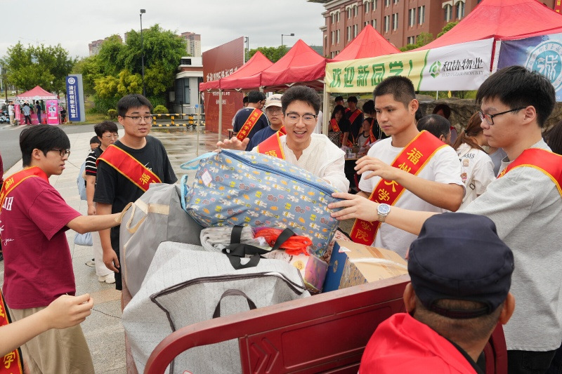 经济管理系、环境资源工程系及化学工程系精心打造“新生专属大礼包”;福州校区食堂为新生奉上“福”味小食,茉莉花茶、橄榄、李干,一口品出校园温情;迎新报道点设立“绿色通道”,工作人员现场为家庭经济困难新生办理学费缓缴、助学金等手续,确保每一位新生都能“无忧入学”;泉港校区组建百余名志愿者团队,在动车站与校内各枢纽节点织就“红色服务网”,参与校园引导、服务帮忙咨询、行李搬运等工作,穿梭在校园各处,用微笑与行动践行责任,确保迎新工作平稳、有序地进行。