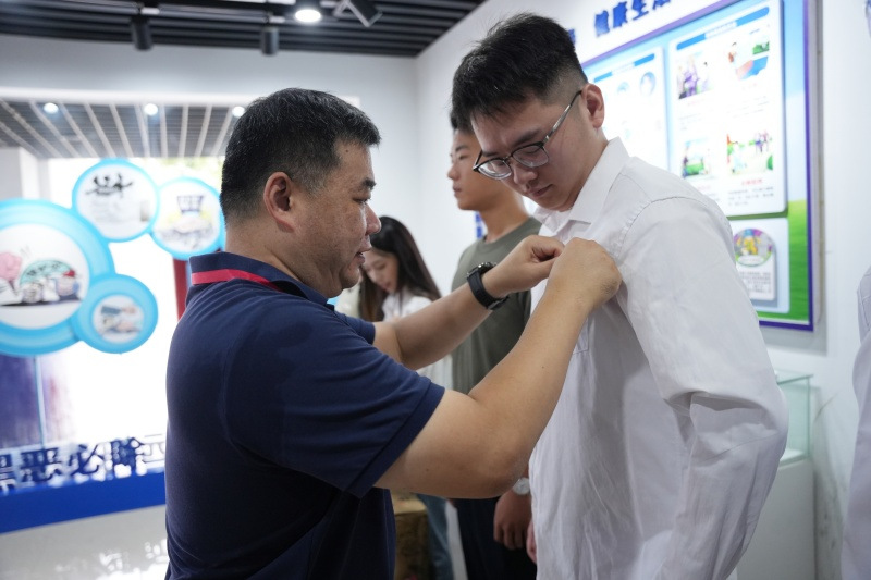 院领导为当天过生日的“新生小寿星”们送上生日祝福和暖心蛋糕,并亲自为新生代表佩戴校徽,这枚校徽不仅象征着“福大足球完场比分人”的身份,更承载着学院的殷切期望。
